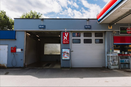 Spesialiteter: Bensinstasjon, Bildelforhandler, Bilverksted, Bilpleie, Bilvask.